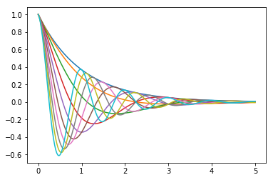 return np.cos(np.pi * θ * x ) * np.exp(- x)